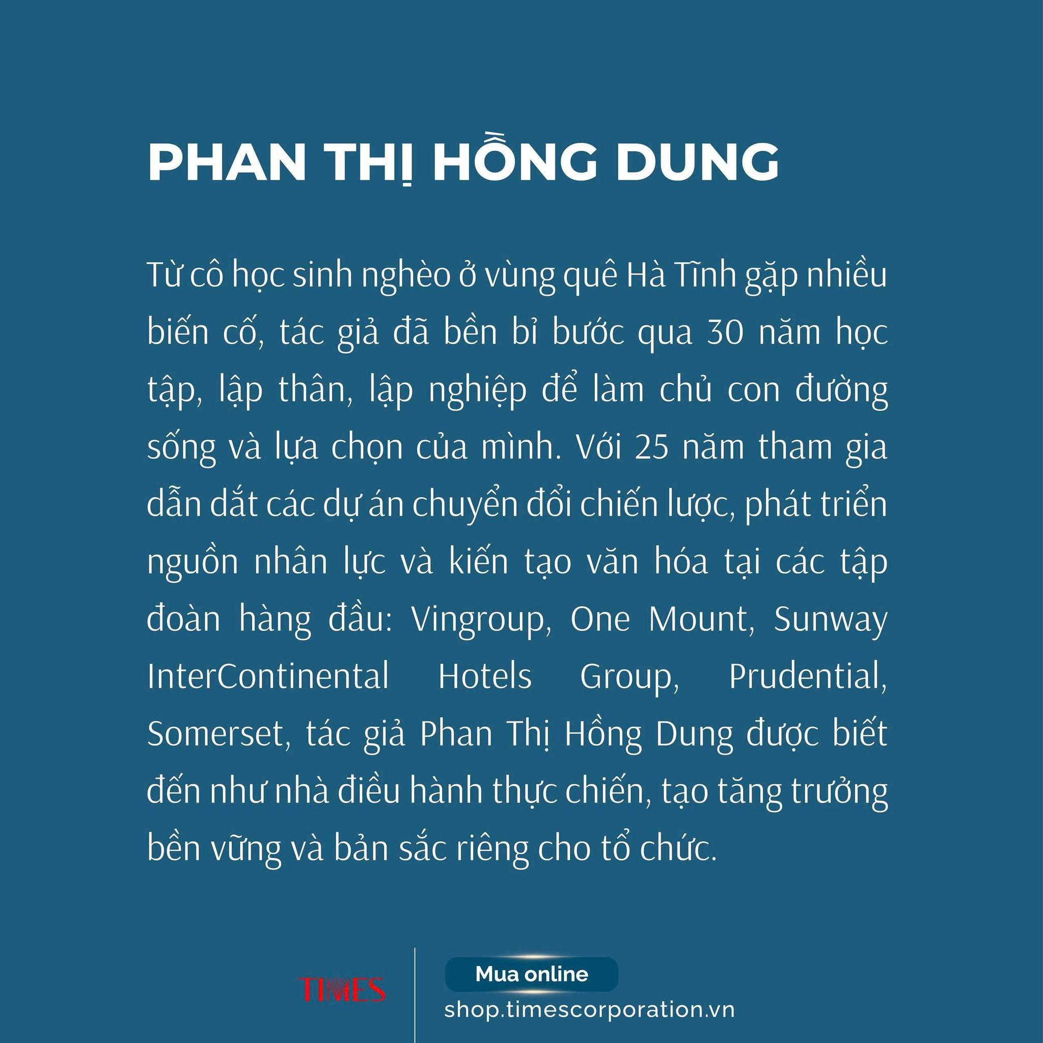 Với 25 năm tham gia dẫn dắt các dự án chuyển đổi chiến lược, phát triển nguồn nhân lực và kiến tạo văn hóa tại các tập đoàn hàng đầu: Vingroup, One Mount, Sunway InterContinental Hotels Group, Prudential, Somerset, Phan Thị Hồng Dung được biết đến như nhà điều hành thực chiến, biến tầm nhìn thành hệ thống vận hành, văn hóa và năng lực đội ngũ có thể đo lường, nhân rộng, tạo tăng trưởng bền vững và bản sắc riêng cho tổ chức.