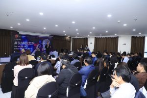 Mở đầu tọa đàm, ông Đào Trung Thành, Phó viện trưởng Viện Blockchain và Trí tuệ nhân tạo (ABAII) thuyết trình về lịch sử phát triển của AI, các cơ hội và vấn đề mà AI đang đặt ra cho xã hội hiện nay. Ông nhấn mạnh thông điệp: “AI sẽ không thay thế bạn mà người sử dụng AI sẽ thay thế bạn”.